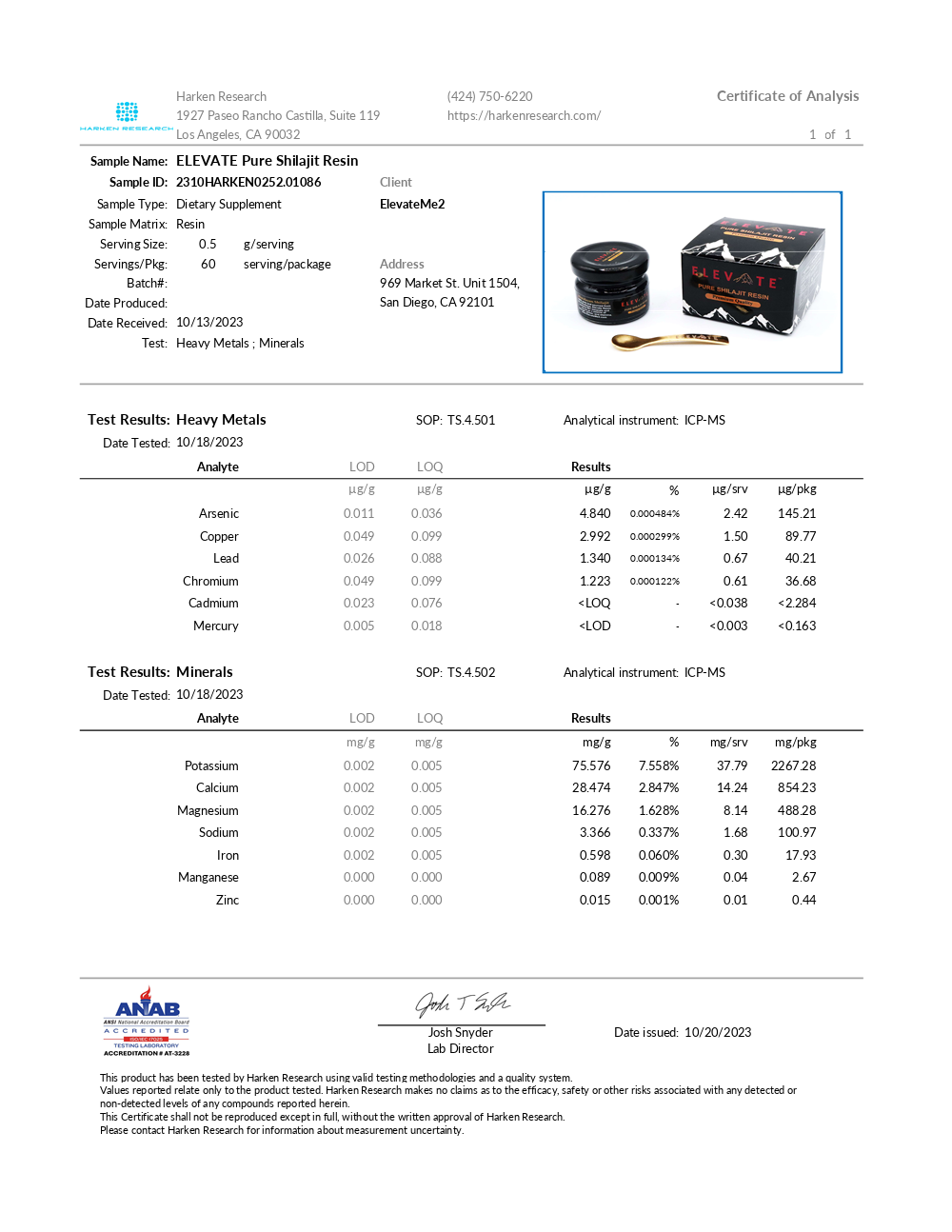 Simply scan the code with your mobile device to access the detailed lab results with comprehensive insights into the purity of our Shilajit.